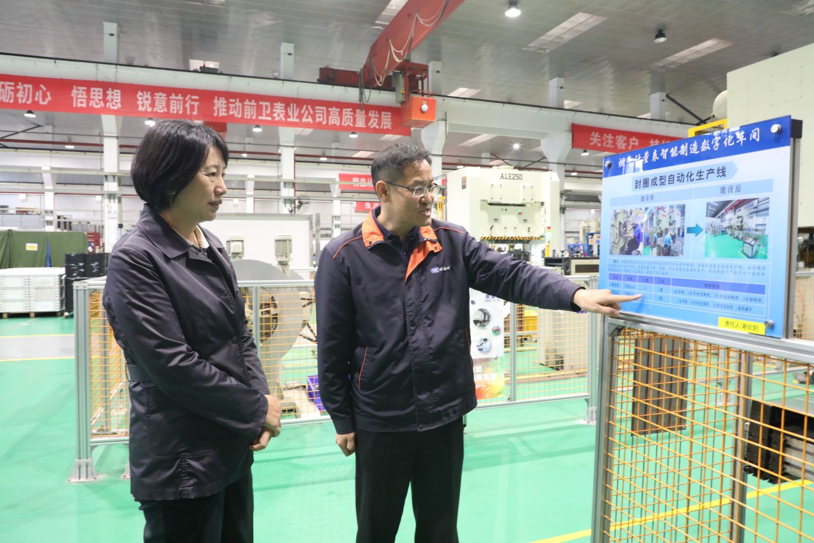 10月18日,公司總經(jīng)理、黨委副書記張柔接待了到公司交流考察的中國船舶工業(yè)貿(mào)易有限公司副總經(jīng)理杜寒冰一行,并陪同客人參觀了前衛(wèi)表業(yè)零部件和總裝車間現(xiàn)場。